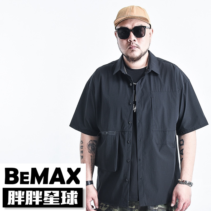 【胖胖星球】中大尺碼‧時尚造型口袋短襯衫 2XL~7XL‧加大【ES1002】黑色,2XL|黑色,3XL|黑色,4XL|黑色,5XL|黑色,6XL|黑色,7XLShirtsBEMAX胖胖星球