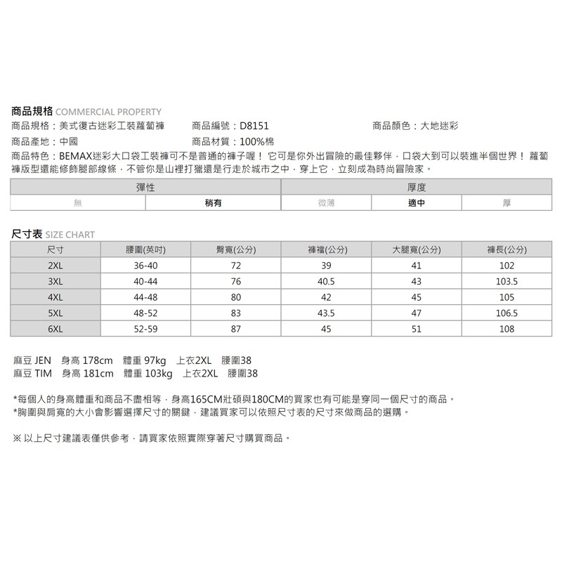 【胖胖星球】中大尺碼‧美式復古迷彩工裝蘿蔔褲 2XL~6XL‧加大【D8151】大地迷彩,2XL|大地迷彩,3XL|大地迷彩,4XL|大地迷彩,5XL|大地迷彩,6XLCargoBEMAX胖胖星球
