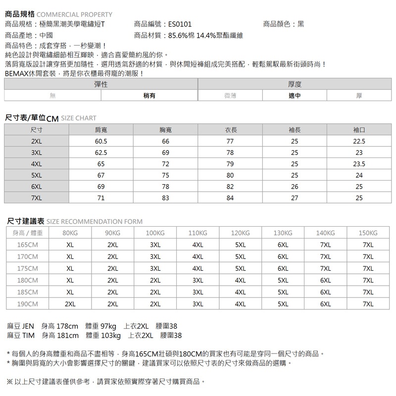 【胖胖星球】中大尺碼‧極簡黑潮美學電繡短T 2XL~7XL‧加大【ES0101】黑色,2XL|黑色,3XL|黑色,4XL|黑色,5XL|黑色,6XL|黑色,7XLT-ShirtsBEMAX胖胖星球
