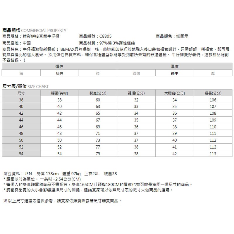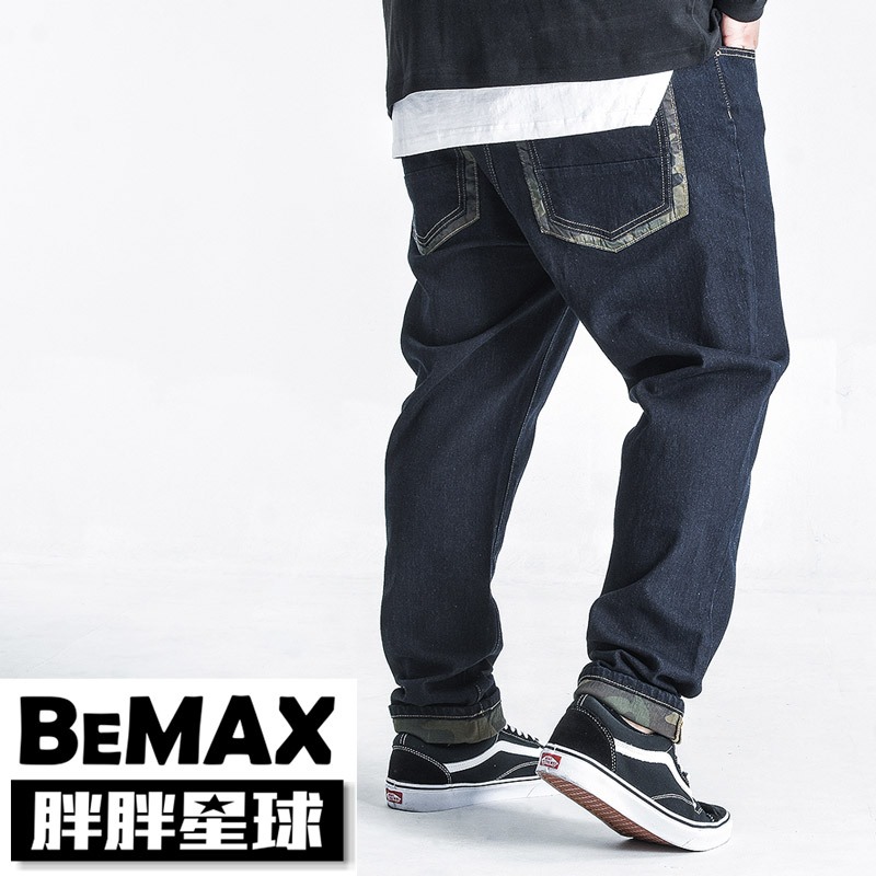 【胖胖星球】中大尺碼‧迷彩拼接直筒牛仔褲 38~54腰‧加大/休閒【C8305】如圖示,38腰|如圖示,40腰|如圖示,42腰|如圖示,44腰|如圖示,46腰|如圖示,48腰|如圖示,50腰|如圖示,52腰|如圖示,54腰BEMAX胖胖星球