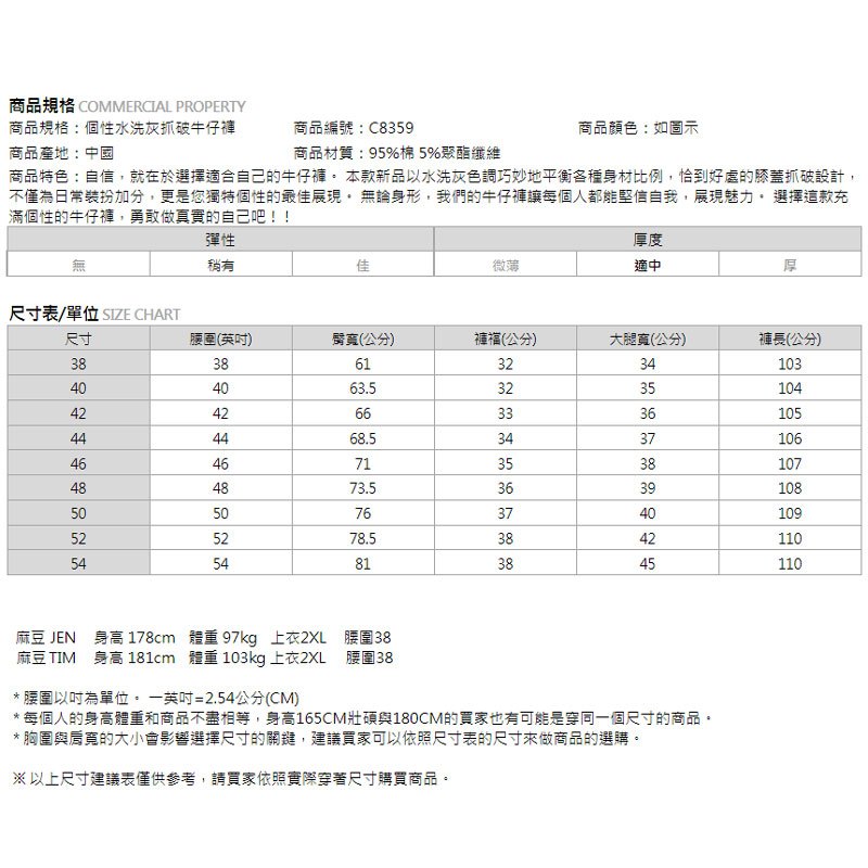 【胖胖星球】中大尺碼‧個性水洗灰抓破牛仔褲 38~54腰‧加大/休閒【C8359】如圖示,38腰|如圖示,40腰|如圖示,42腰|如圖示,44腰|如圖示,46腰|如圖示,48腰|如圖示,50腰|如圖示,52腰|如圖示,54腰BEMAX胖胖星球