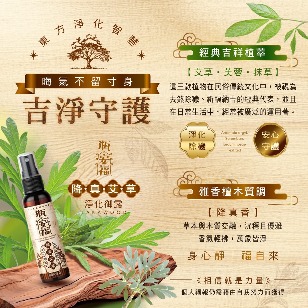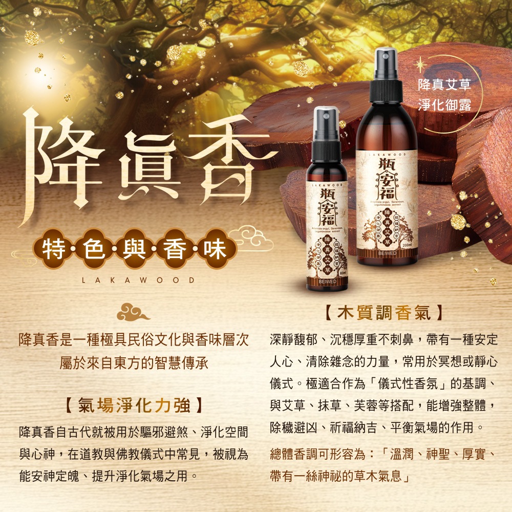 BEIWED 降真艾草淨化御露 艾草 抹草 芙蓉除穢 祈福納吉 檀木草本香調60ml 隨身瓶|200ml 家用版OthersBEIWED 貝薇美學官方旗艦店