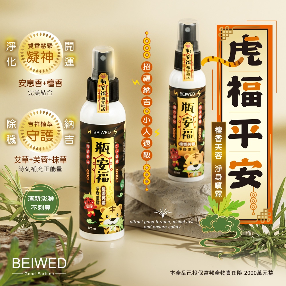 BEIWED 瓶安福 – 檀香芙蓉淨身噴霧 (錢虎)60ml|120mlOthersBEIWED 貝薇美學官方旗艦店