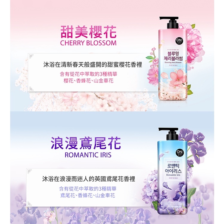 ON THE BODY 花漾香氛沐浴乳900g (甜美櫻花|浪漫鳶尾花|優雅玫瑰) 多款任選 韓國 LG健康生活甜美櫻花|浪漫鳶尾花|優雅玫瑰Body Wash & SoapBeauty box 美麗百寶箱